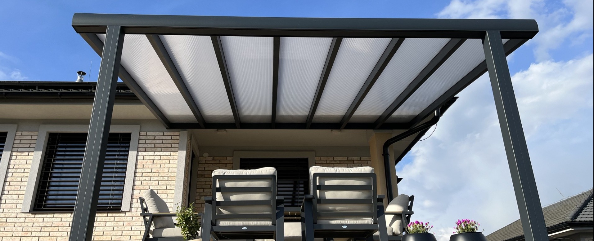 Hliníkové pergoly Fortis s polykarbonátovou střechou představují moderní a odolné řešení pro zastřešení terasy či zahrady. Nabízejí spolehlivou ochranu před deštěm i sluncem a zároveň elegantně doplní vzhled vašeho venkovního prostoru.