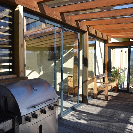 Rámové hliníkové posuvné zasklení L150 představuje spolehlivé a elegantní řešení pro zasklení pergol a zimních zahrad. Tento systém kombinuje moderní design, vysokou funkčnost a účinnou ochranu před větrem, deštěm i hlukem, díky čemuž výrazně zvyšuje komfort venkovního posezení.