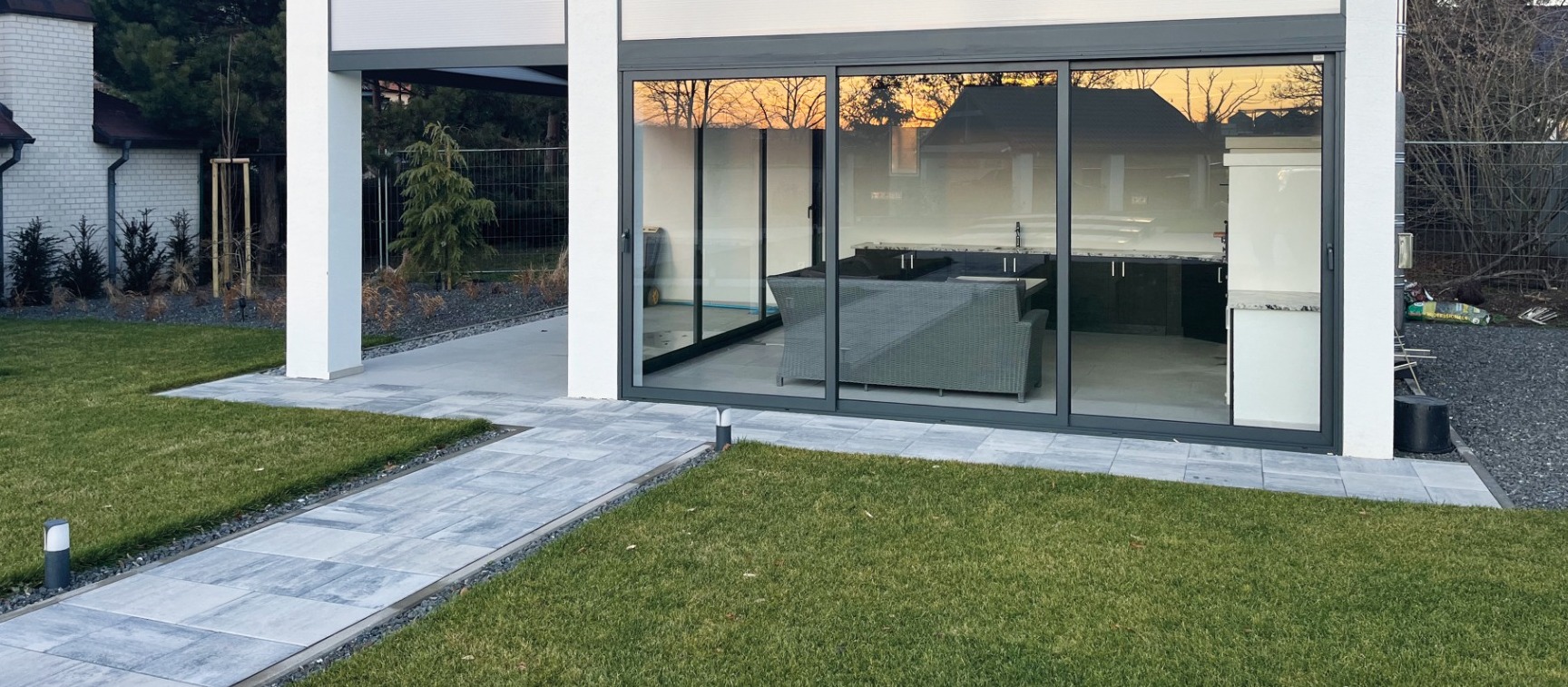 Rámové hliníkové posuvné zasklení L200 je prémiovým řešením pro pergoly a zimní zahrady, které spojuje moderní vzhled, vysokou funkčnost a vynikající tepelnou izolaci. Konstrukce je vyrobena z kvalitních hliníkových profilů s dlouhou životností a nenáročnou údržbou. Systém umožňuje plynulé a snadné posouvání křídel s možností použití vodicí kolejnice ve variantě dvoukolejné nebo trojkolejné, což poskytuje maximální flexibilitu při otevírání a využití prostoru. Výplň tvoří izolační dvojsklo, které zajišťuje výrazně lepší tepelněizolační vlastnosti, ochranu před chladem, větrem, deštěm a hlukem, zatímco propouští dostatek přirozeného světla. Díky elegantním liniím a nadčasovému designu se L200 skvěle hodí ke každému typu pergoly či zimní zahrady. Posuvné zasklení L200 rozšiřuje možnosti celoročního využití venkovních prostor a zvyšuje komfort domova.